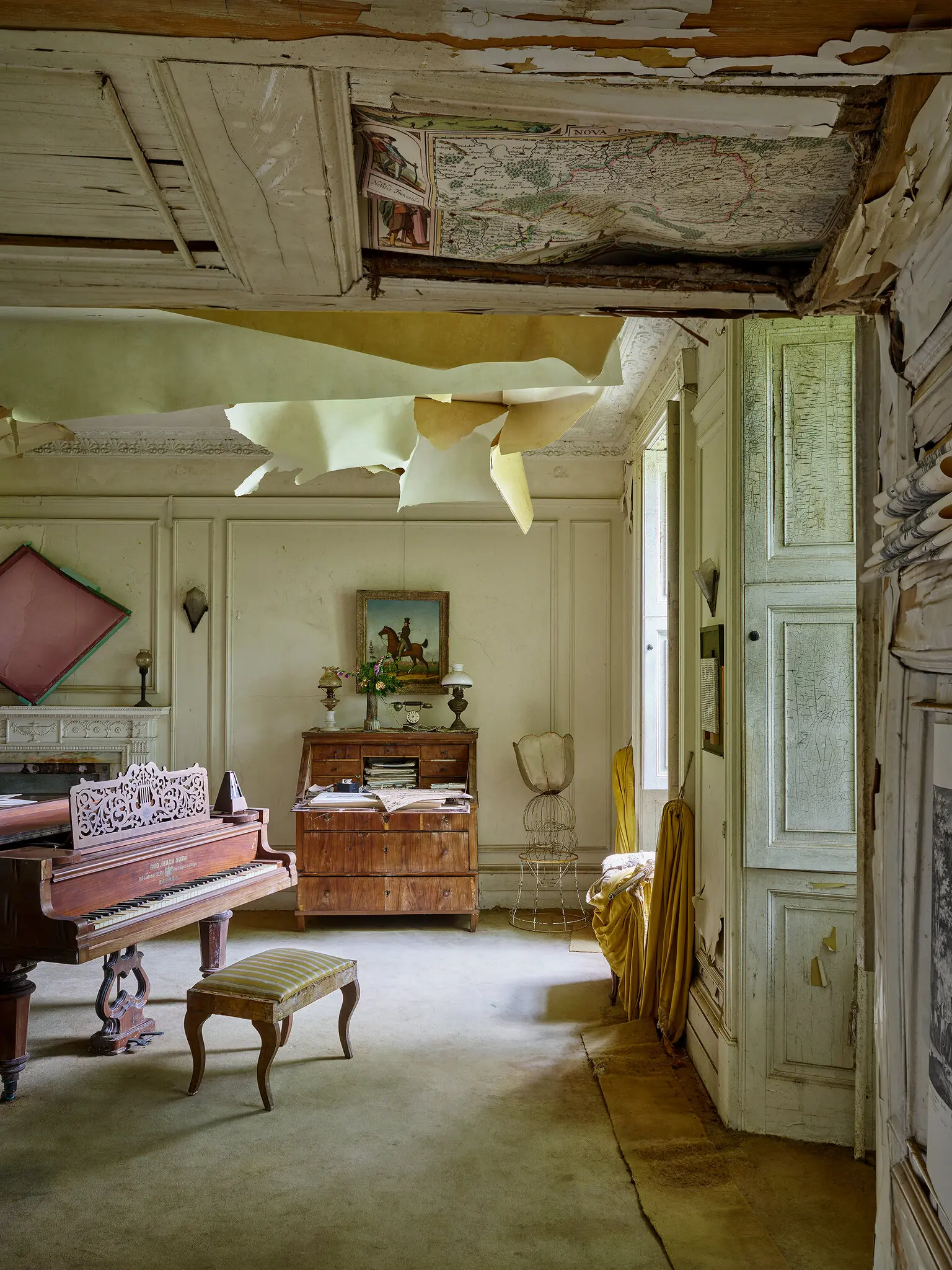 Born and raised in Prague, Blanka wore long, airy dresses and flower-strewn hats and often cooked Czech stews and Hungarian goulash in the stone-floored kitchen, which is warmed by a huge brick-lined fireplace because the house lacks central heating. The bright green paneled walls of a second-floor bathroom are decorated with her renderings of old-fashioned roses, which she copied from a set of antique teacups. “They created their own little island disconnected from the local scene, which was quite conservative at the time,” says Carla, who has been a director of the London-based P.R. agency Albany Arts Communications since 2015. “I don’t know what local people thought. To me, it was normal.”